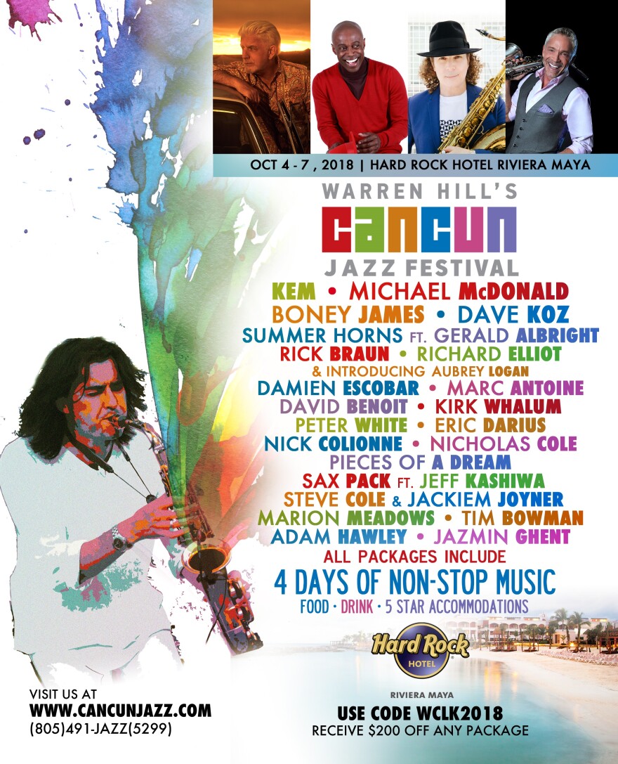 Source : www.facebook.comWarren Hill’s Cancun Jazz Festival October 4 7 Features Dave Koz